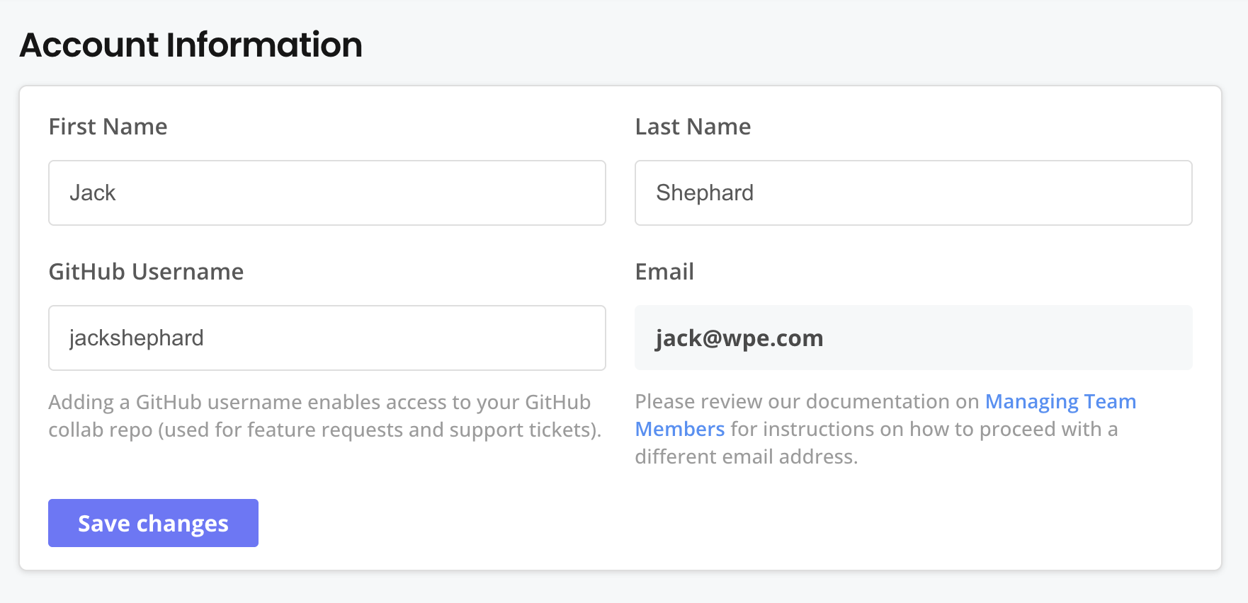 Instruct each Vendor Portal team member to add their GitHub username to the Account Settings page in the Vendor Portal.